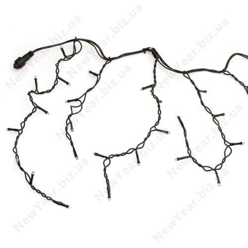Все наружные гирлянды можно соединять друг с другом последовательно через специальный разъем. Можно соединять гирлянды любых цветов - разъем на всех установлен одинаковый. В обычном положении разъем на конце провода закрыт резиновой заглушкой.