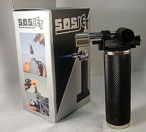 Honest 505 - горелка в форме пистолета. Имеет достаточно большой внутренний баллон, благодаря чему чаще всего используется в полевых условиях. Предохранитель в этой модели выполнен в виде пластикового держателя, который при работе нужно снимать. Он закрывает регулятор потока газа, так что фиксатор можно установить и на работающую горелку, чтоб случайно не сбить установленный режим.