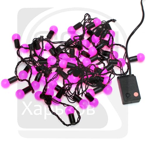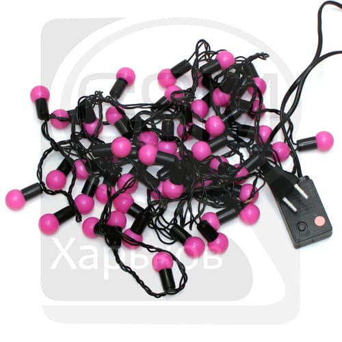 Гирлянда домашняя, 50 светодиодов в розовых шариках, 2 см, розовый свет, чорний провод