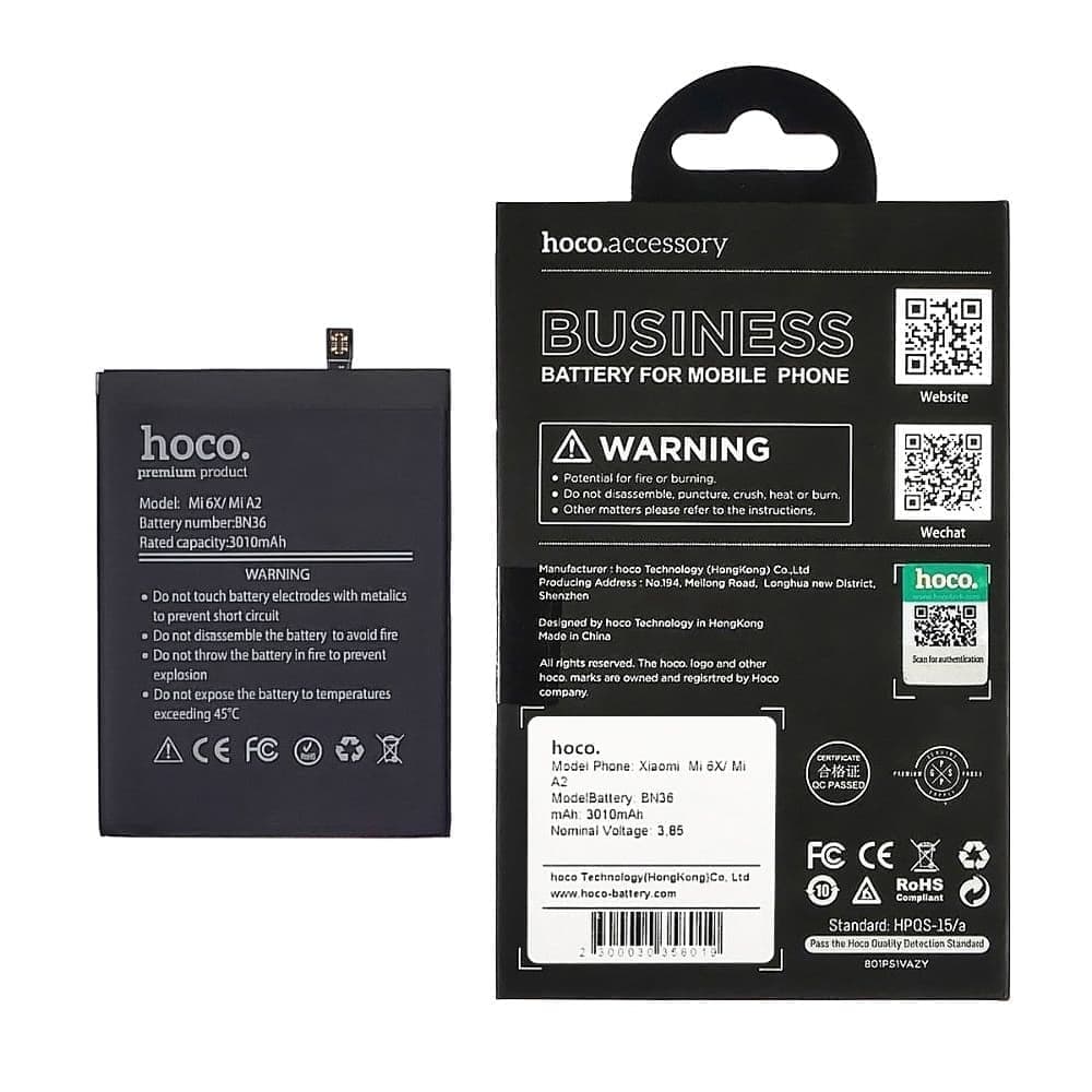 Купить Акумулятор Xiaomi Mi 6X, Mi A2, M1804D2SG, M1804D2SI, BN36, Hoco | 3-12 міс. гарантії | АКБ, батарея, аккумулятор можно и в нашем офисе, платить за доставку при этом не нужно.