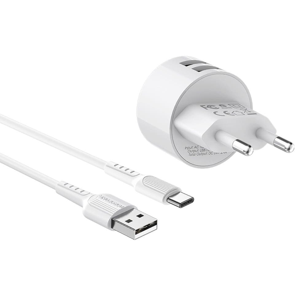 Купить Сетевое зарядное устройство Borofone BA23A, 2 USB, 2.4 А, Type-C, белое можно и в нашем офисе, платить за доставку при этом не нужно.