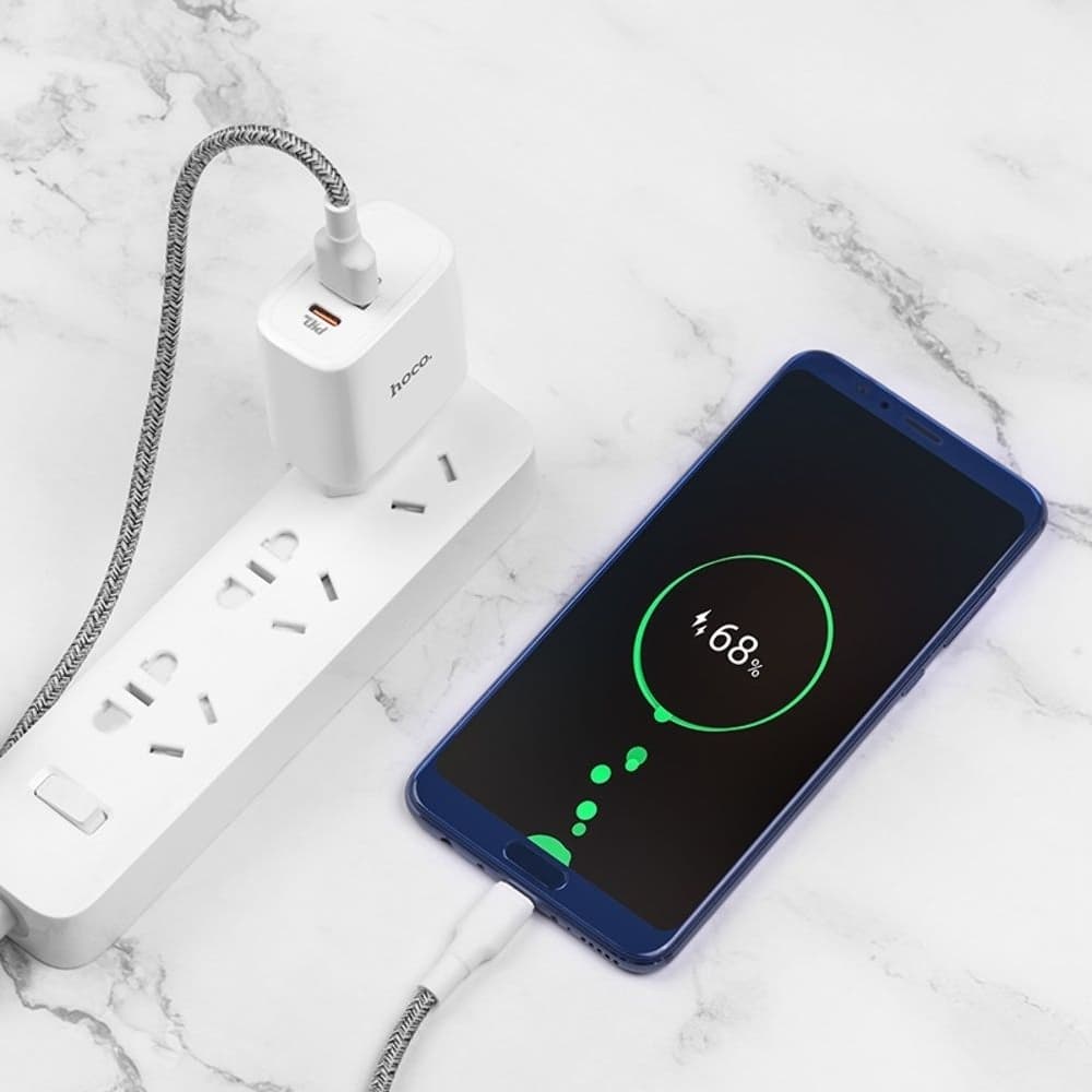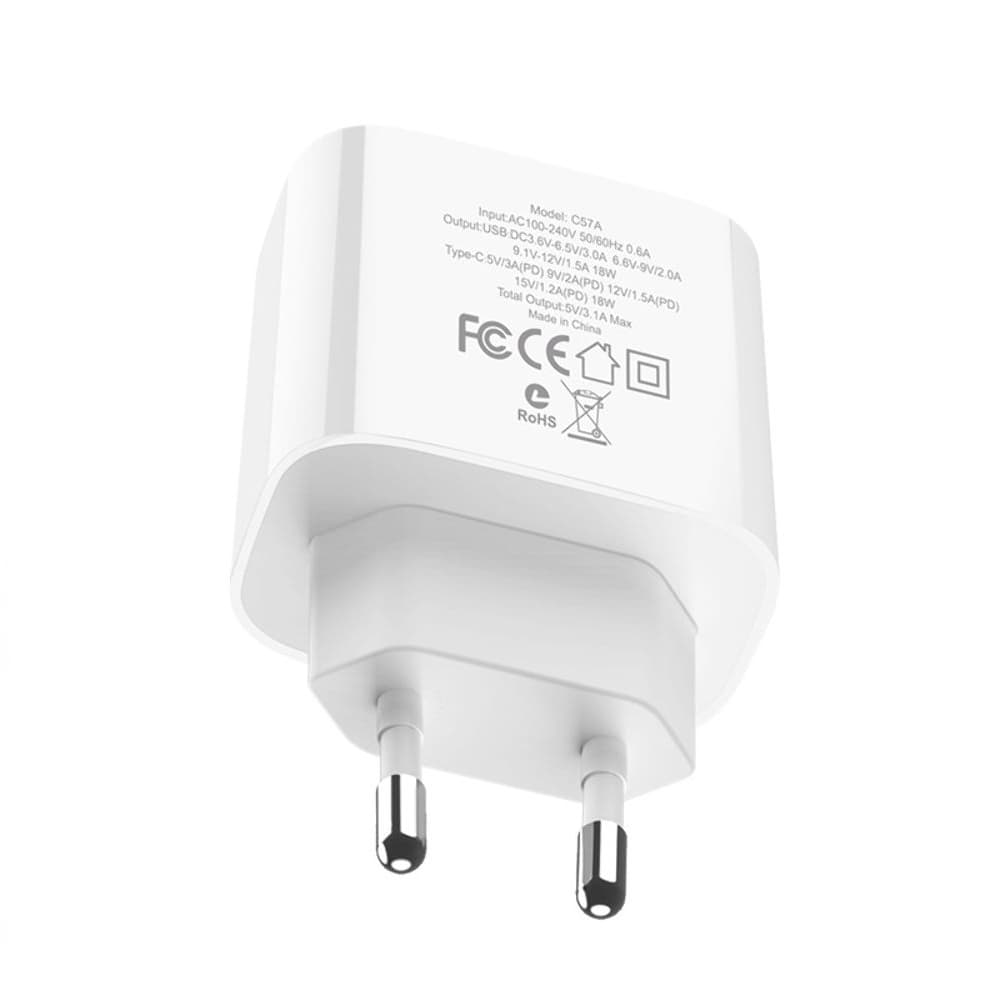 Сетевое зарядное устройство Hoco C57A, Power Delivery, Quick Charge 3.0, 18 Вт, белое
