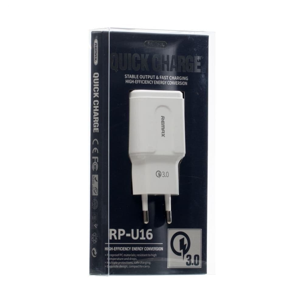 Сетевое зарядное устройство Remax RP-U16, 1 USB, 3.0A, белое