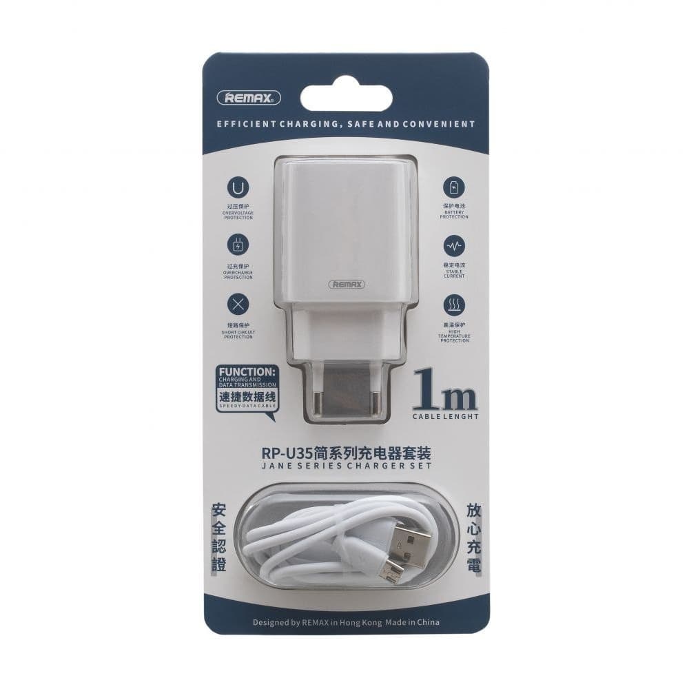 Купить Сетевое зарядное устройство Remax RP-U35, 2 USB, Micro-USB, белое можно и в нашем офисе, платить за доставку при этом не нужно.