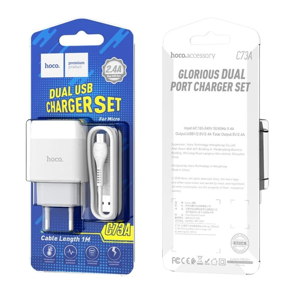 Купить Сетевое зарядное устройство Hoco C72A, 1 USB, 2.1 А, 10.5 Вт, Micro-USB, белое можно и в нашем офисе, платить за доставку при этом не нужно.