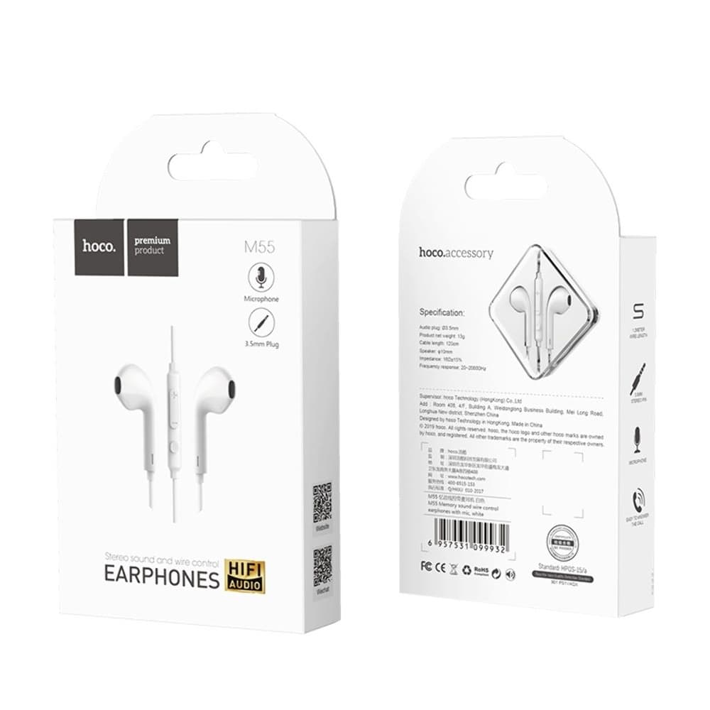 Наушники Hoco M55, проводные, вкладыши, с микрофоном, Jack 3.5, белые