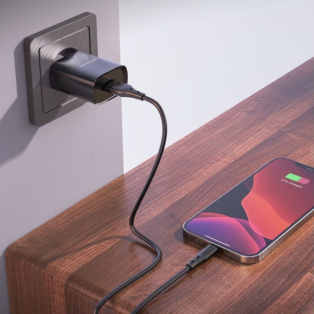 Сетевое зарядное устройство Borofone BN1, 1 USB, 2.1 А, Lightning, черное