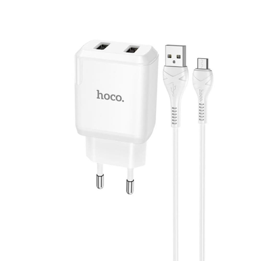 Сетевое зарядное устройство Hoco N7, 2 USB, 2.1 А, 10.5 Вт, Micro-USB, белое