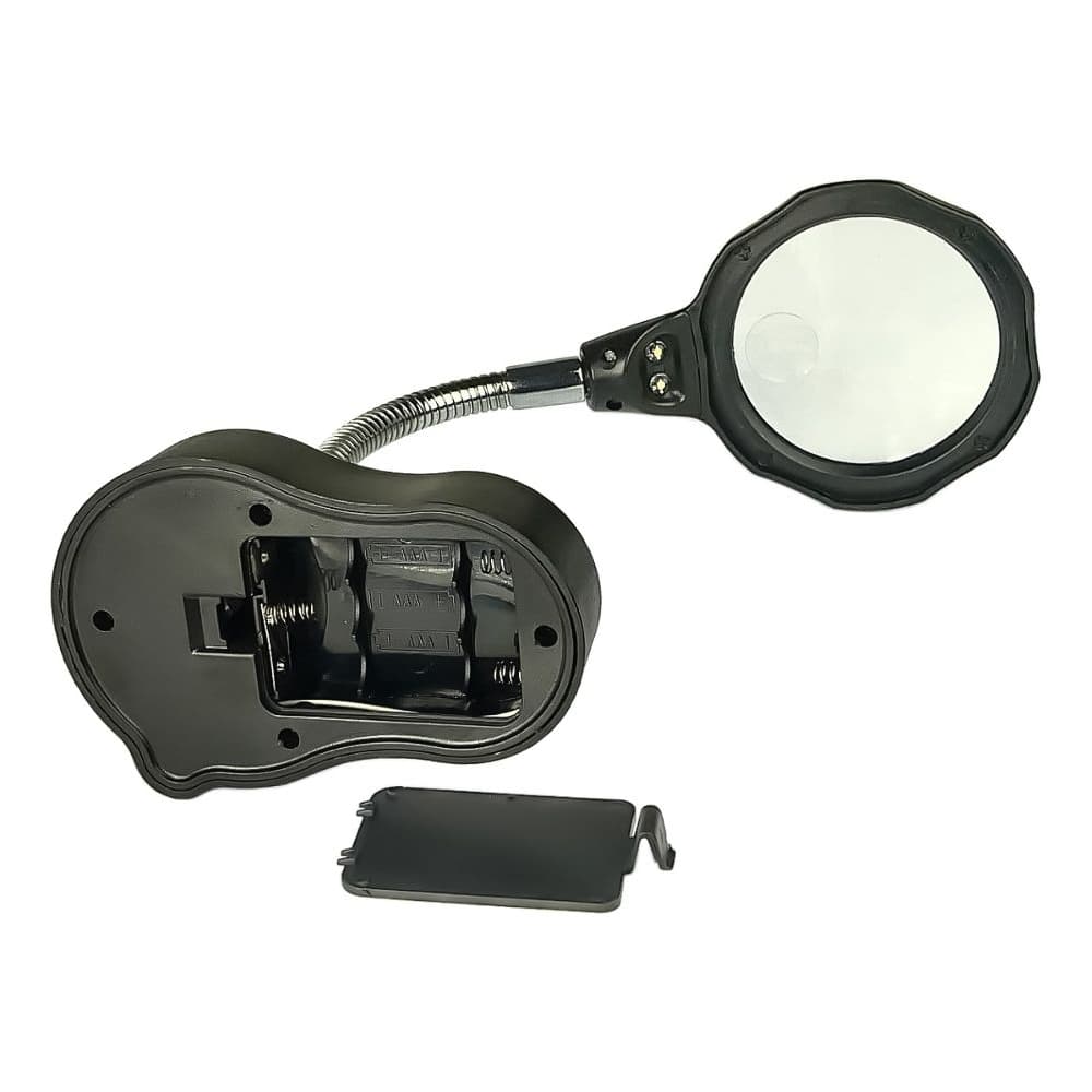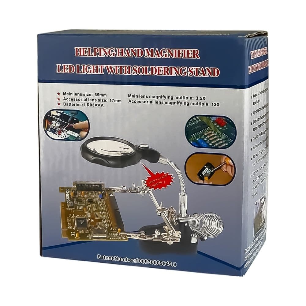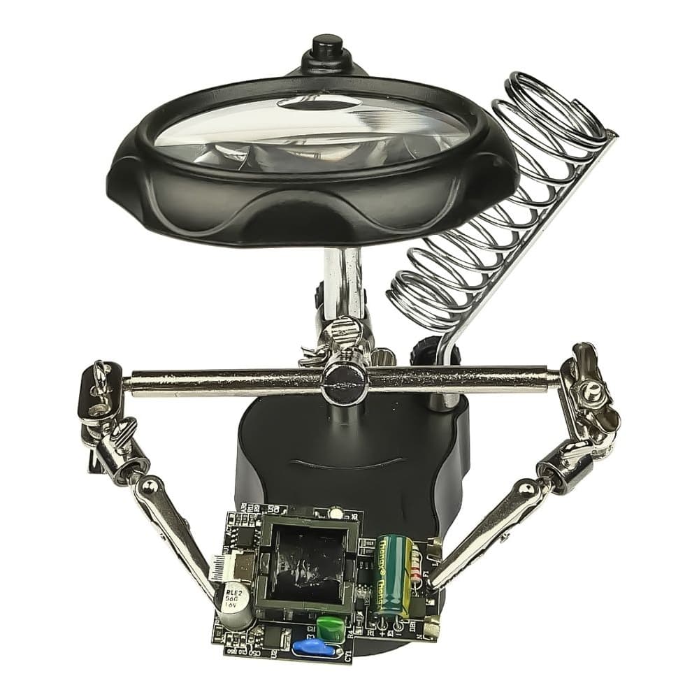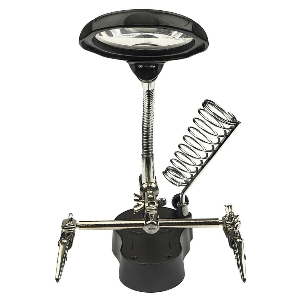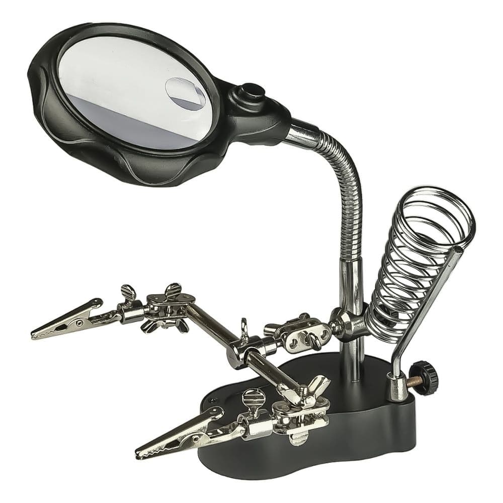 Тримач плат и паяльника MG16126-A, с LED-подсветкой и двойной лупой, большая лупа d=65 мм, 3.5x; малая лупа d=17, 12x | держатель