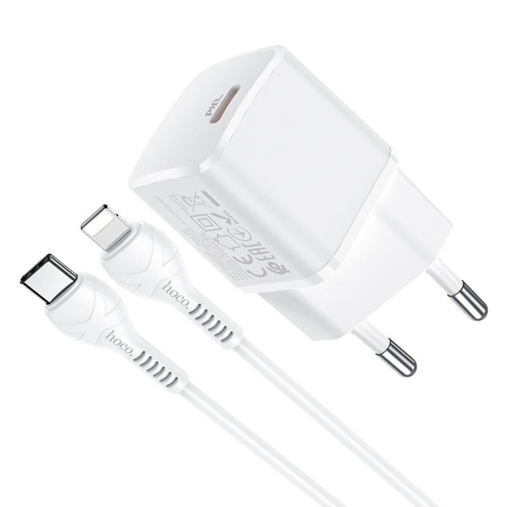 Сетевое зарядное устройство Hoco N10, Power Delivery (20 Вт), 3.0 А, Type-C на Lightning, белое