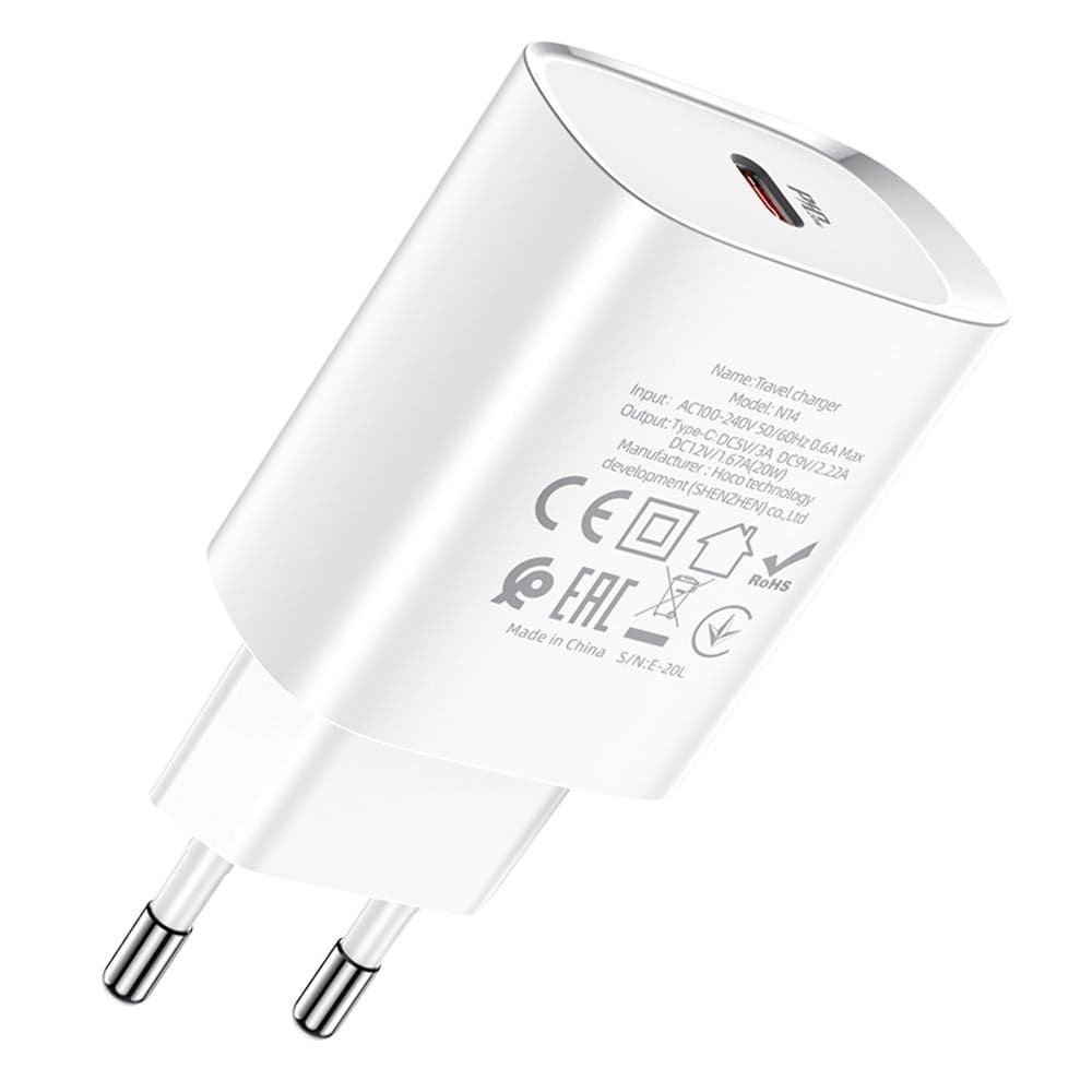Сетевое зарядное устройство Hoco N14, 1 USB Type-C, Power Delivery (20 Вт), 3.0 А, белое
