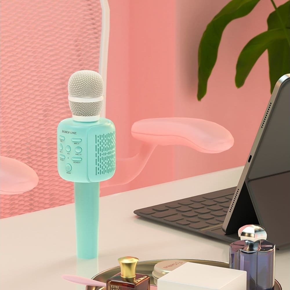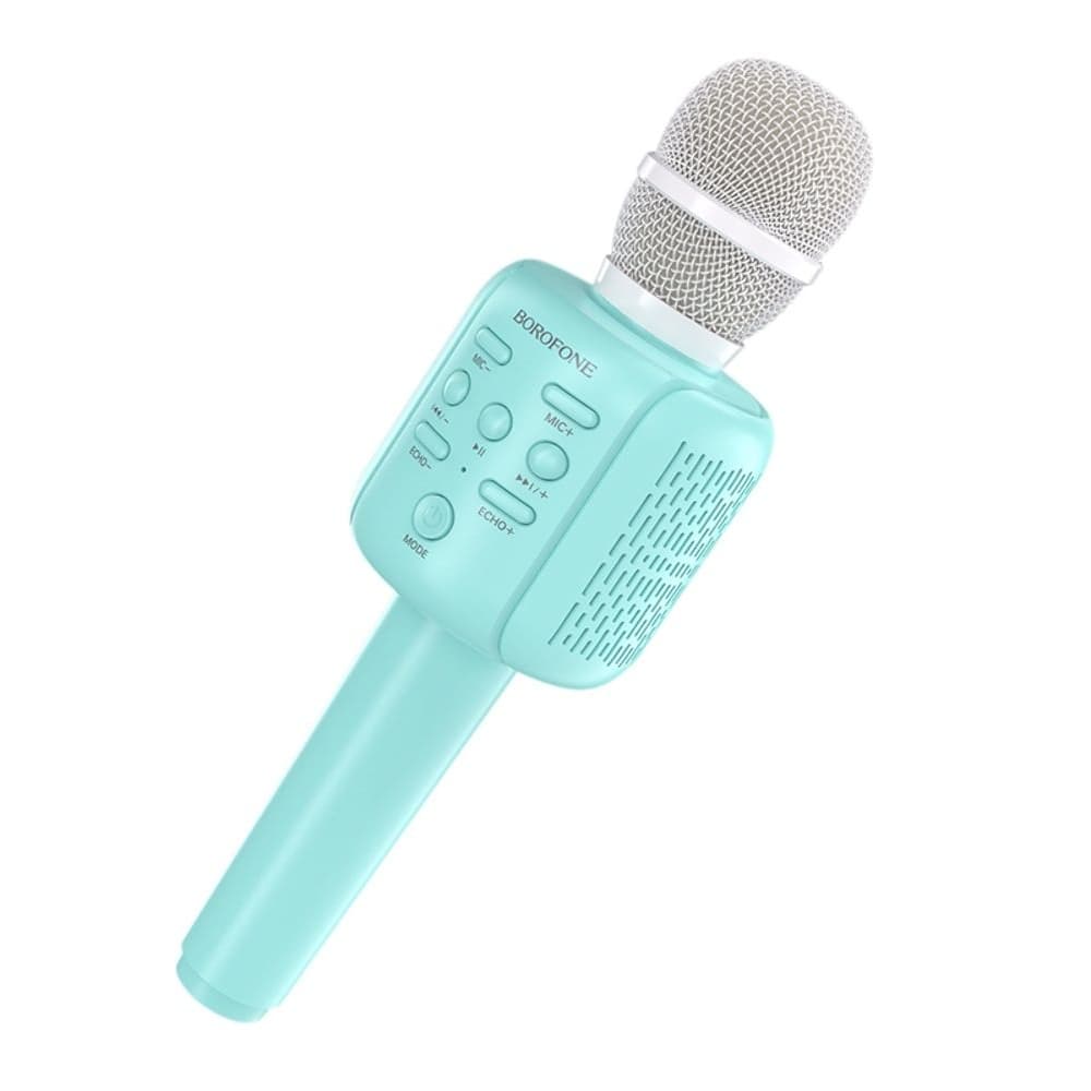 Купить Микрофон караоке Borofone BF1, беспроводный, со встроенной колонкой, бирюзовый можно и в нашем офисе, платить за доставку при этом не нужно.