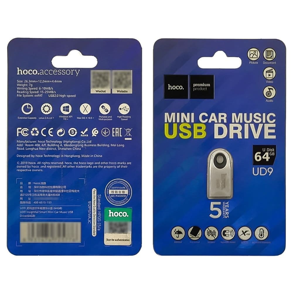 Купить USB-накопитель Hoco UD9, 64 GB, USB 2.0, серебристый можно и в нашем офисе, платить за доставку при этом не нужно.