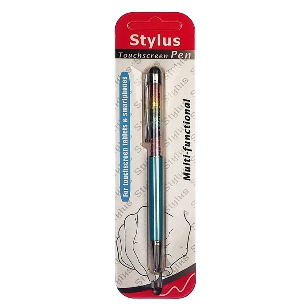 Стилус емкостный, с шариковой ручкой, металлический, голубой, с кристаллами цветов радуги