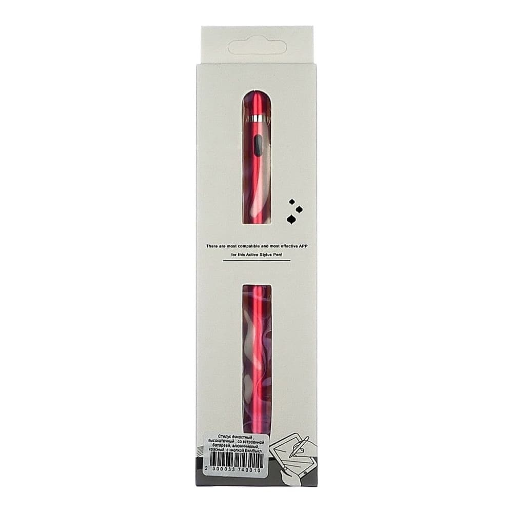 Стилус емкостный, высокоточный, активный, со встроенной батареей, алюминиевый, красный, с кнопкой Вкл/Выкл
