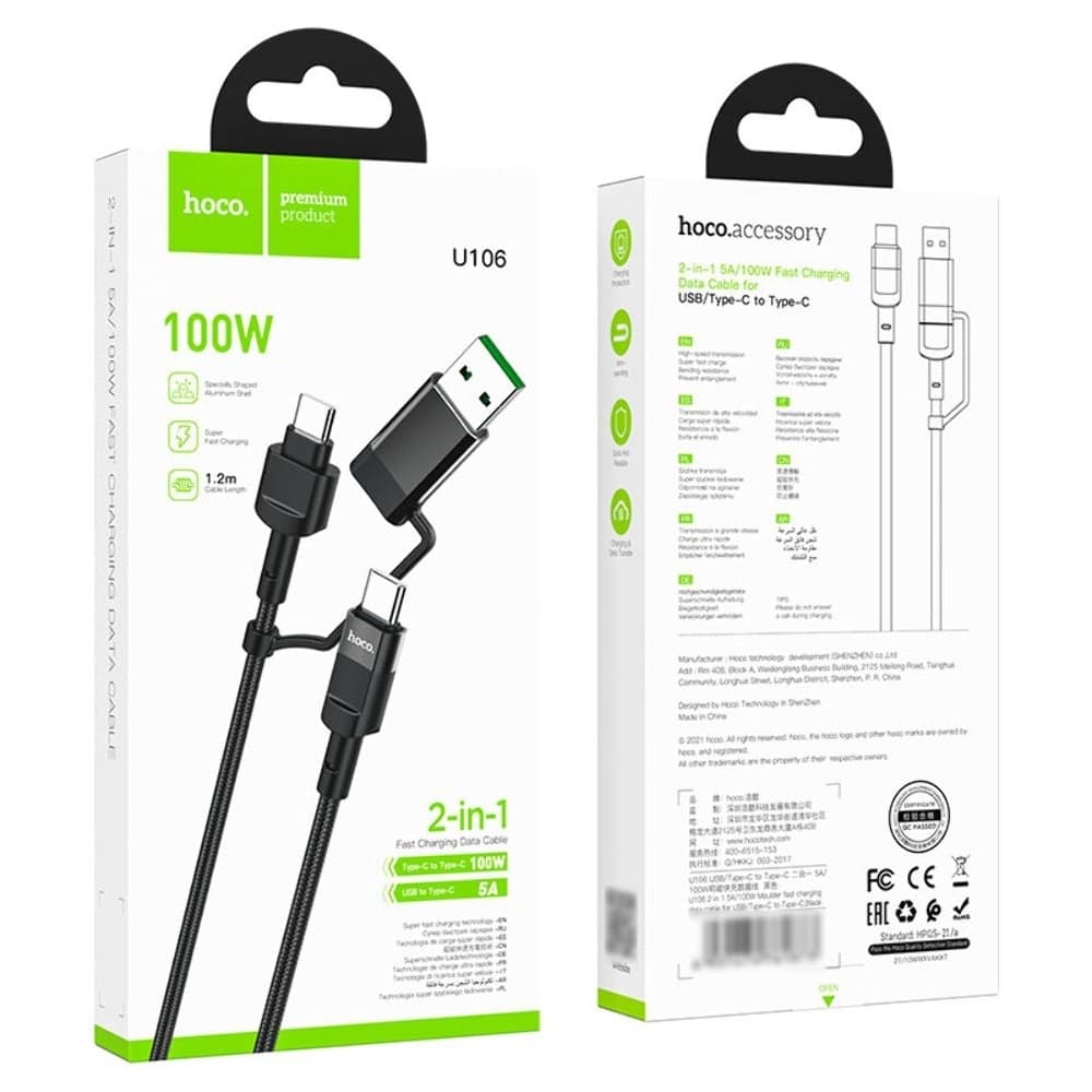 USB-кабель Hoco U106, Type-C на Type-C, Type-C на Lightning, 100 см, Power Delivery (100 Вт), чорний