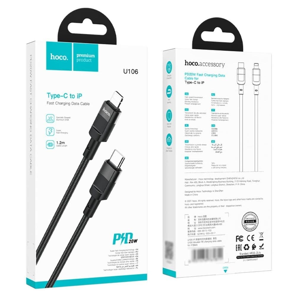 USB-кабель Hoco U106, Type-C на Lightning, 100 см, Power Delivery (20 Вт), чорний