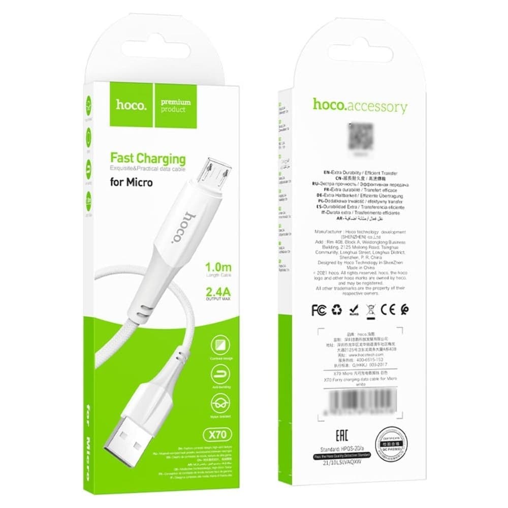 USB-кабель Hoco X70, Micro-USB, 2.4 А, 100 см, білий