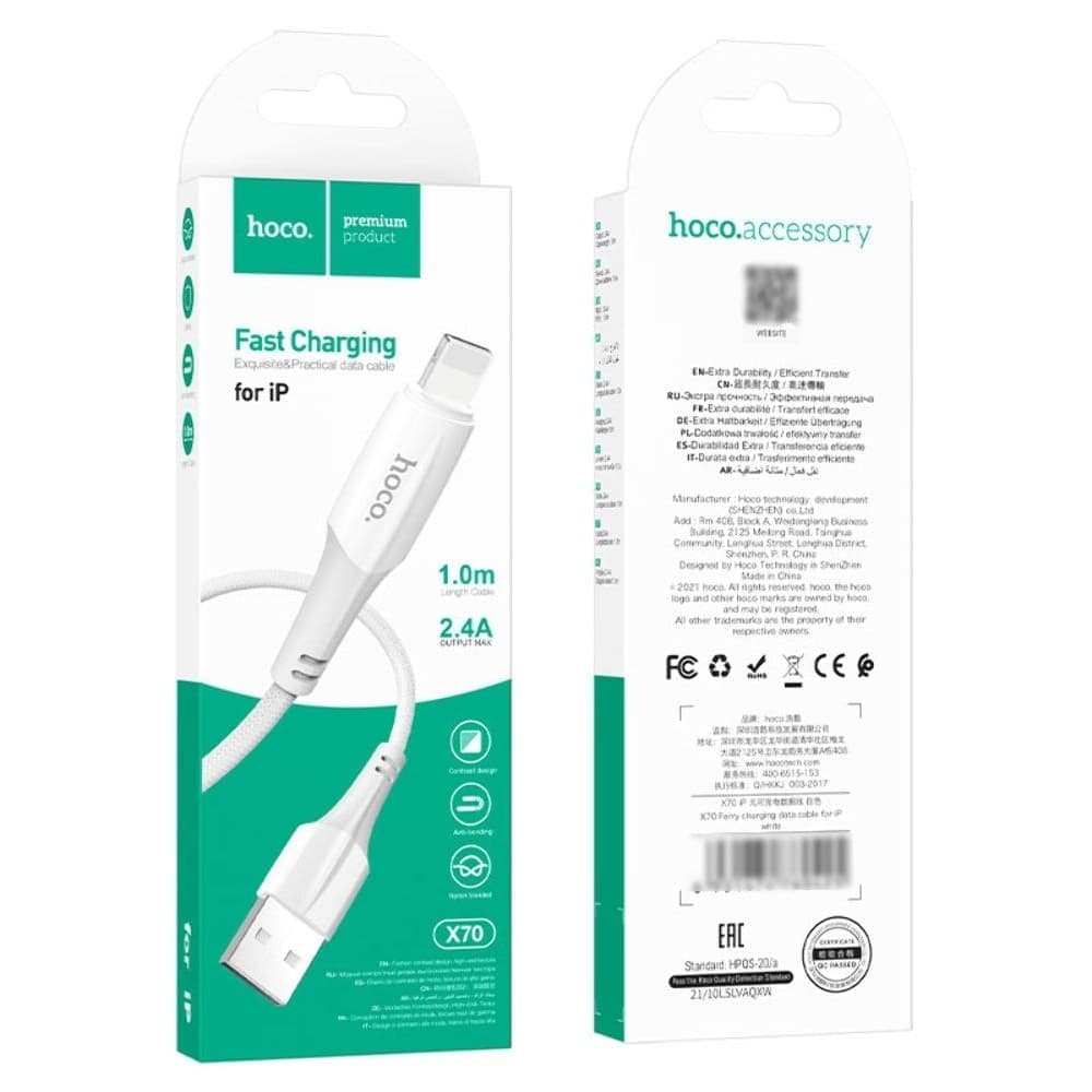 USB-кабель Hoco X70, Lightning, 2.4 А, 100 см, білий