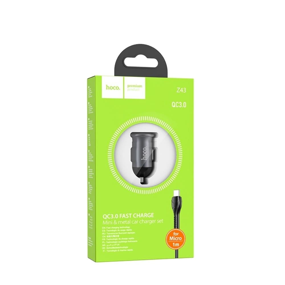 Автомобильний зарядний пристрій Hoco Z43, Quick Charge 3.0, Micro-USB, серое | зарядка, зарядное устройство