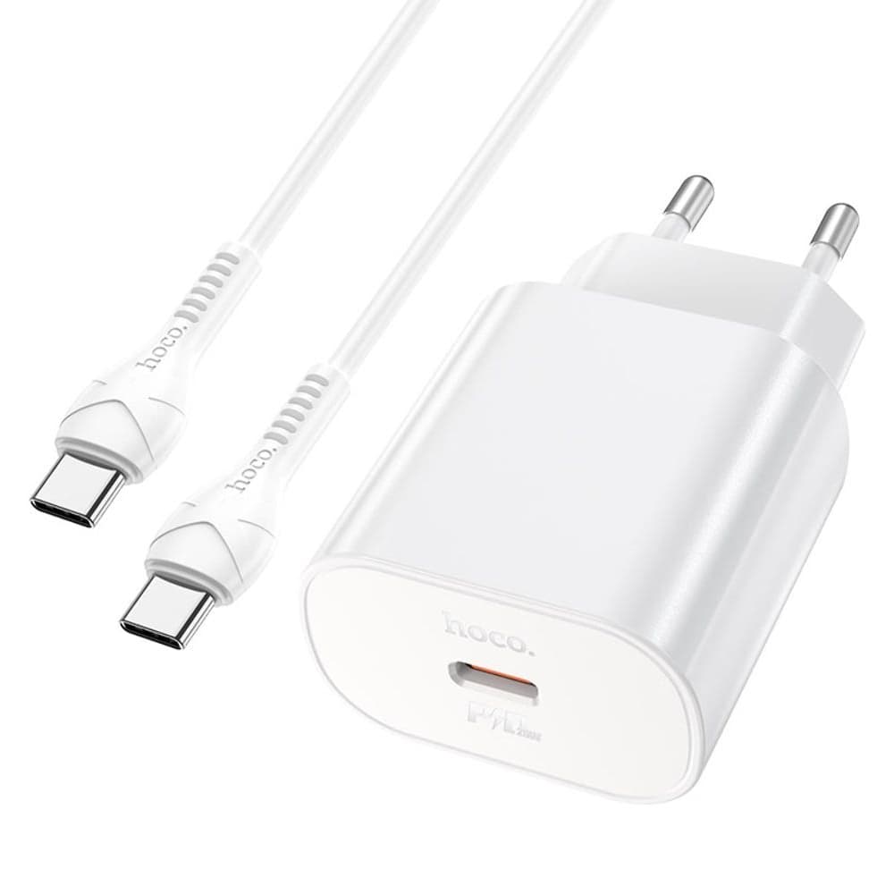 Сетевое зарядное устройство Hoco N22, 1 Type-C, Power Delivery (25 Вт), Type-C на Type-C, белое
