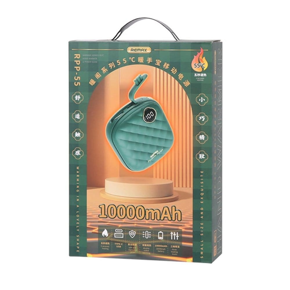 Power bank Remax RPP-55, 10000 mAh, зеленый, с подогревом, 40 - 55 °C