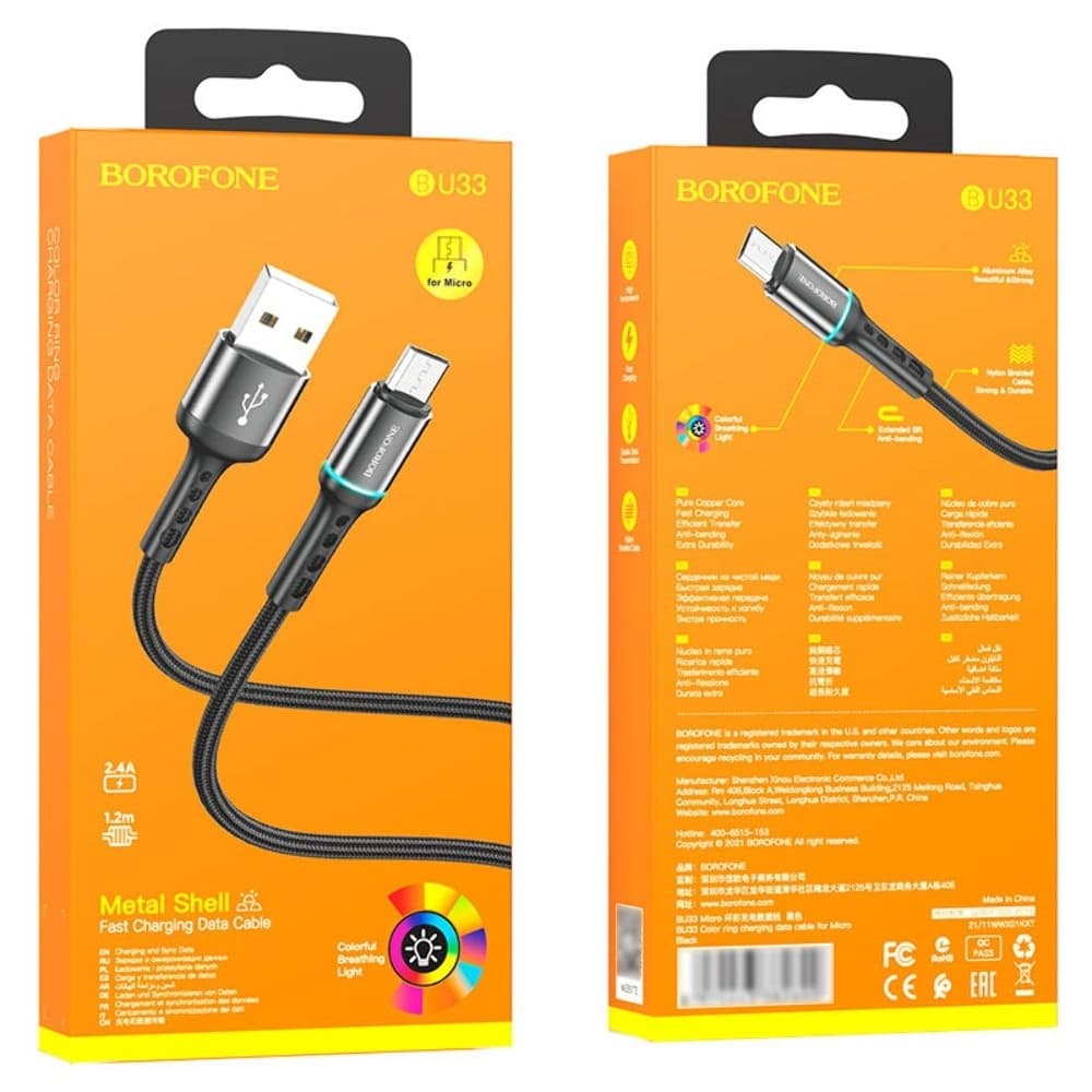 USB-кабель Borofone BU33, Micro-USB, 2.4 А, 120 см, с индикатором, чорний