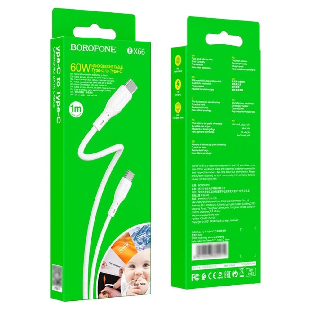 USB-кабель Borofone BX66, Type-C на Type-C, 3.0 А, 60 Вт, 100 см, білий