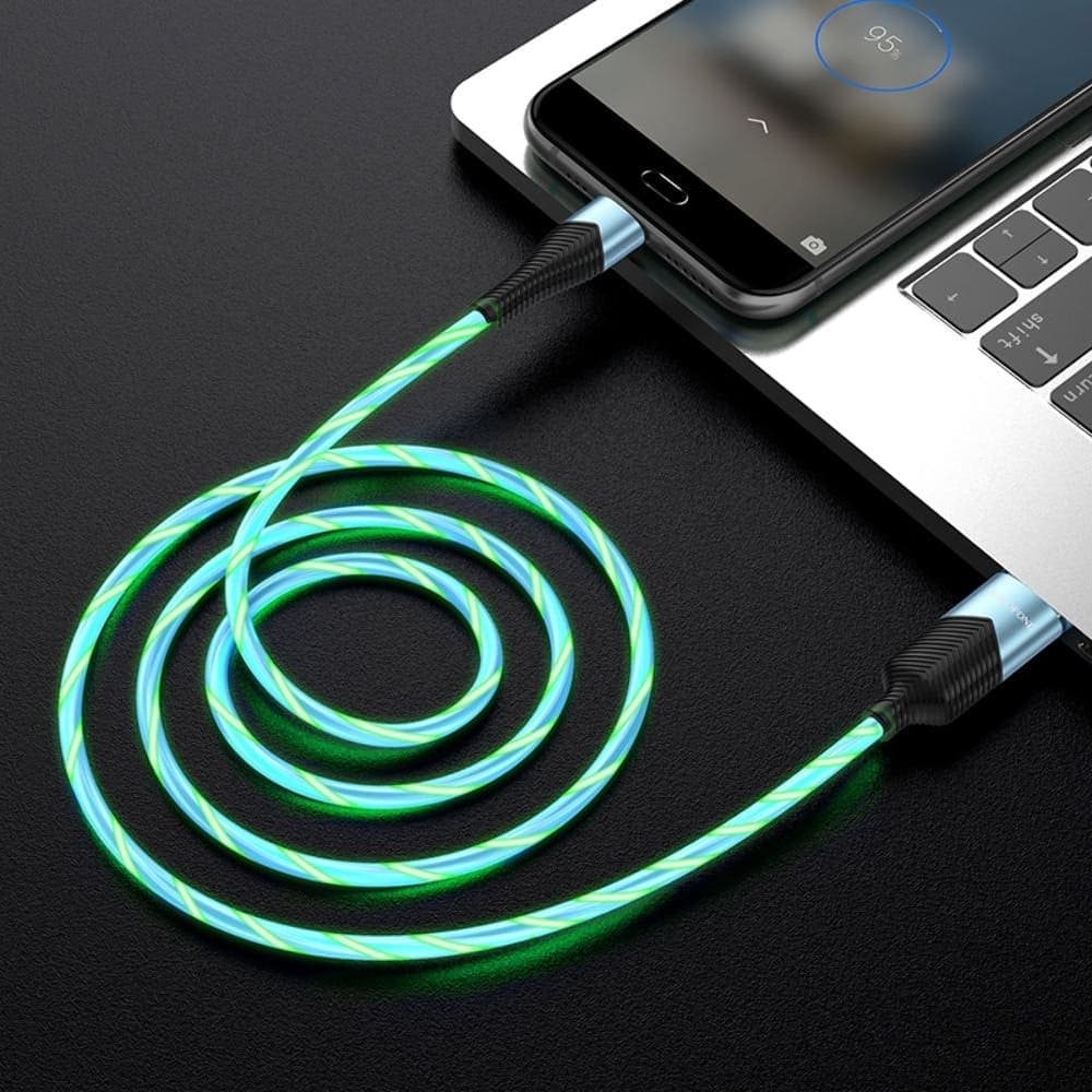 USB-кабель Borofone BU19, Micro-USB, 2.4 А, 100 см, со светящимся проводом, синій