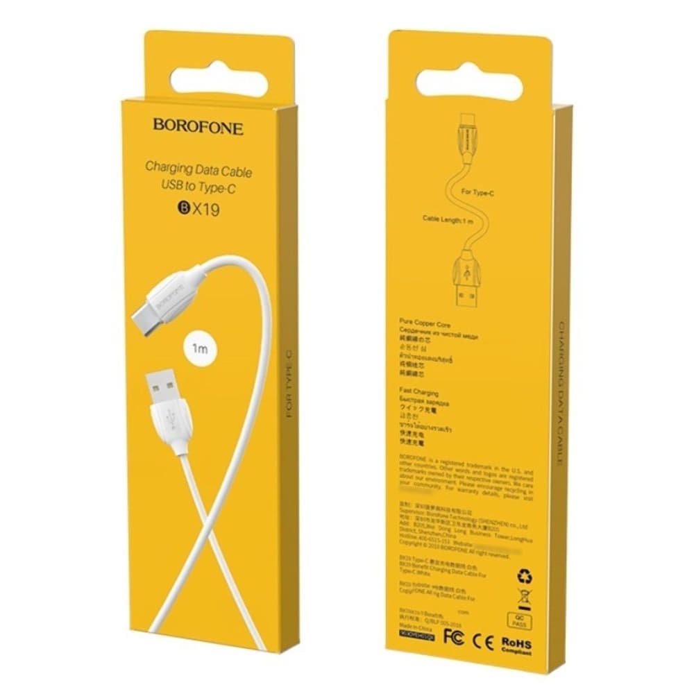 USB-кабель Borofone BX19, Type-C, 3.0 А, 100 см, білий