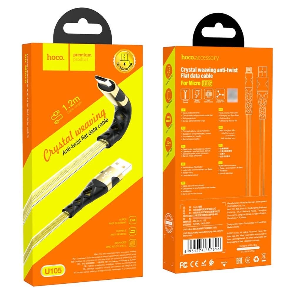 Купить USB-кабель Hoco U105, Micro-USB, 2.4 А, 120 см, золотистий можно и в нашем офисе, платить за доставку при этом не нужно.