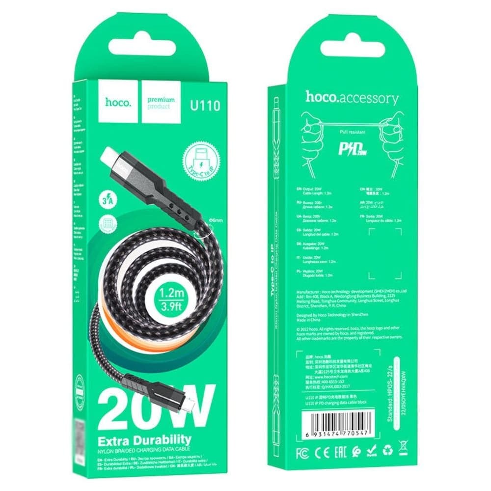 USB-кабель Hoco U110, Type-C на Lightning, 120 см, Power Delivery (20 Вт), чорний