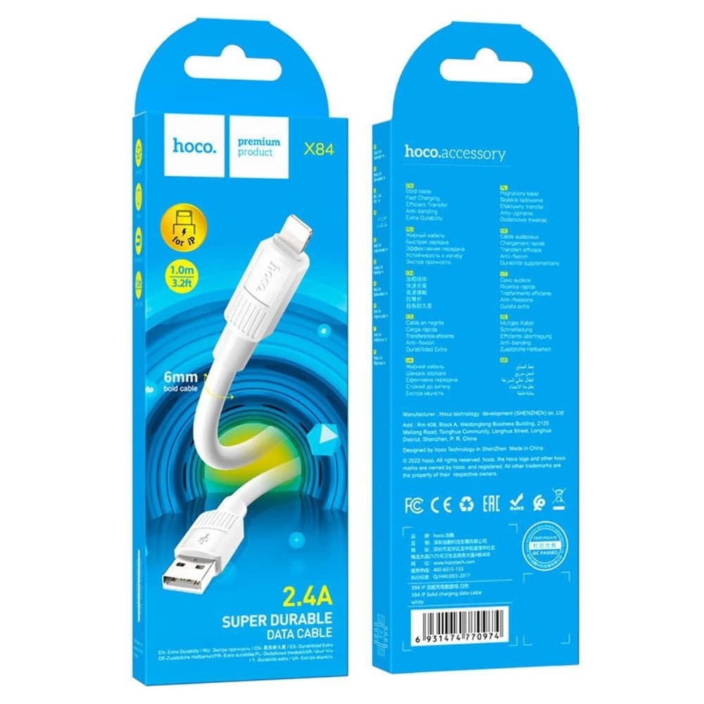 USB-кабель Hoco X84, Lightning, 2.4 А, 100 см, білий