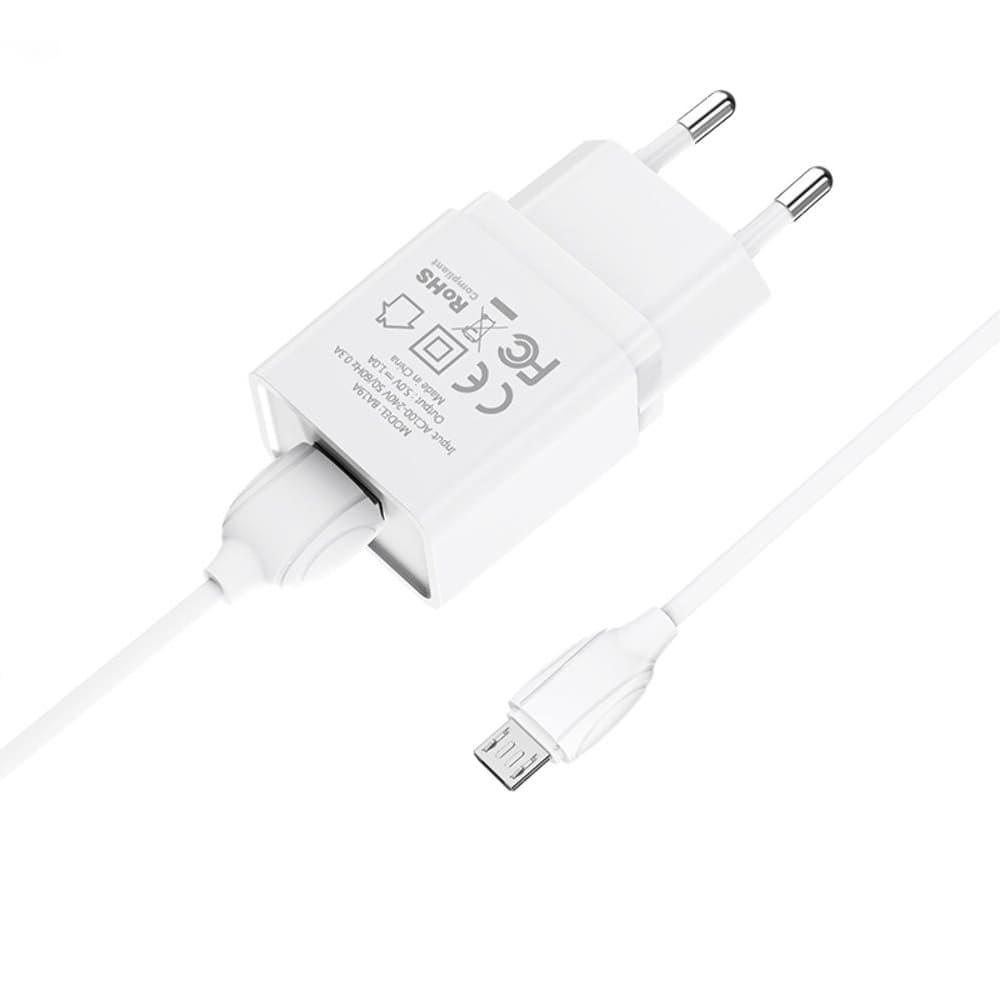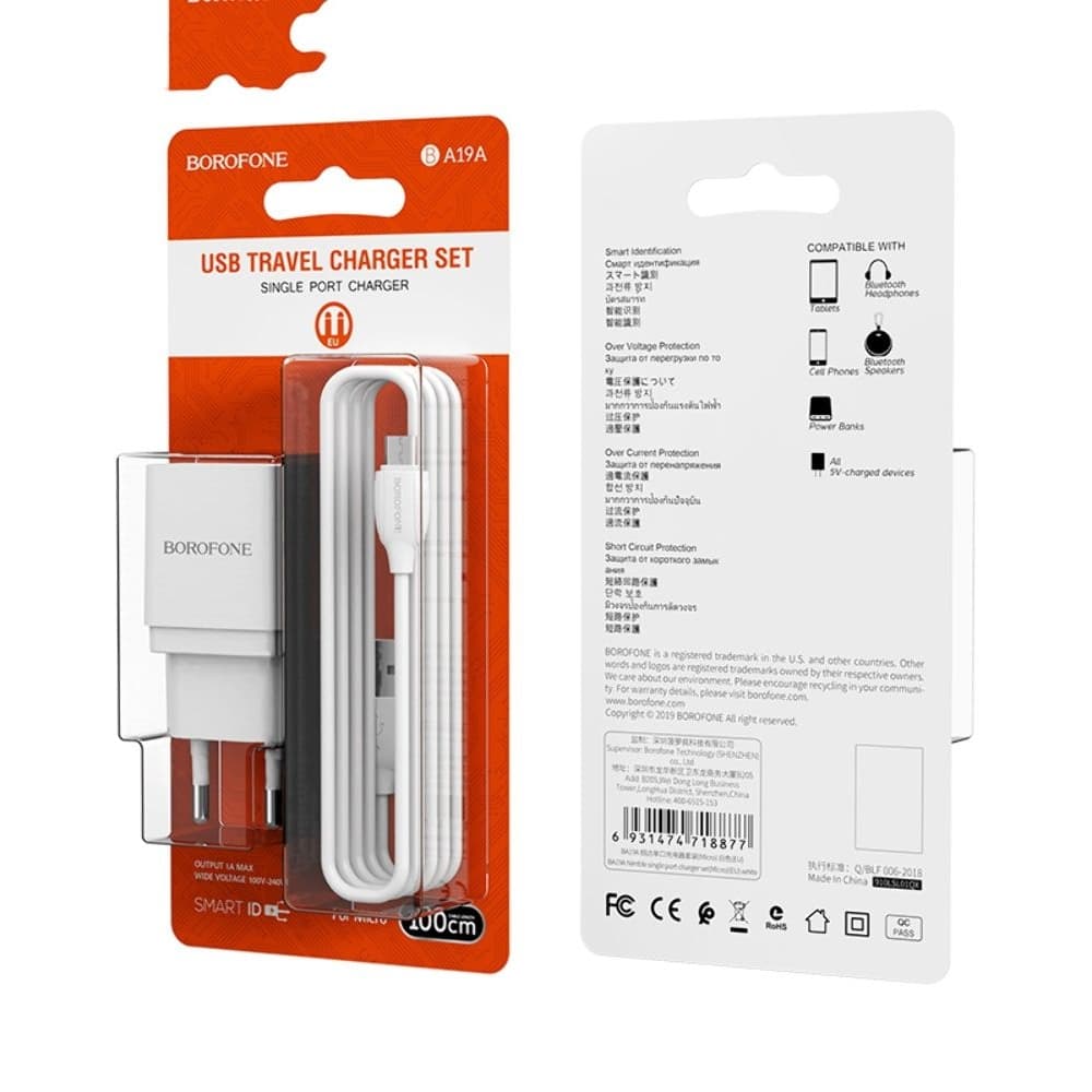 Купить Сетевое зарядное устройство Borofone BA19A, 1 USB, 1.0 А, с кабелем Micro-USB, белое можно и в нашем офисе, платить за доставку при этом не нужно.