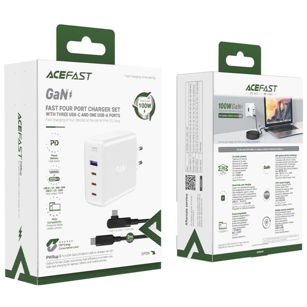 Купить Сетевое зарядное устройство Acefast A37, 1 USB, 3 Type-C, 5 А, Power Delivery (100 Вт), Quick Charge, c кабелем Type-C на Type-C, 200 см, белое можно и в нашем офисе, платить за доставку при этом не нужно.