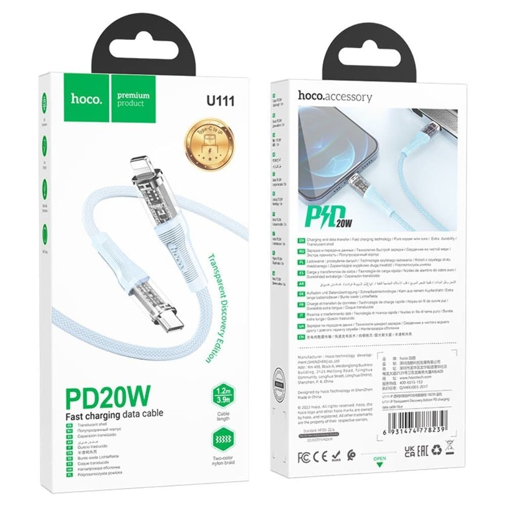 USB-кабель Hoco U111, Type-C на Lightning, Power Delivery (20 Вт), 100 см, синій