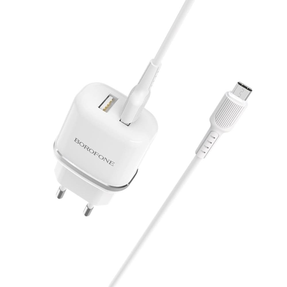 Купить Сетевое зарядное устройство Borofone BA25A, 2 USB, 2.4 А, Micro-USB, белое можно и в нашем офисе, платить за доставку при этом не нужно.