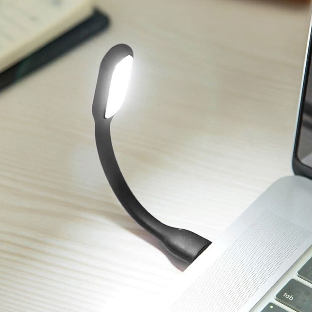 USB LED лампочка на гибкой ножке, холодный свет, черная | подсветка клавиатуры ноутбука, фонарик Power Bank