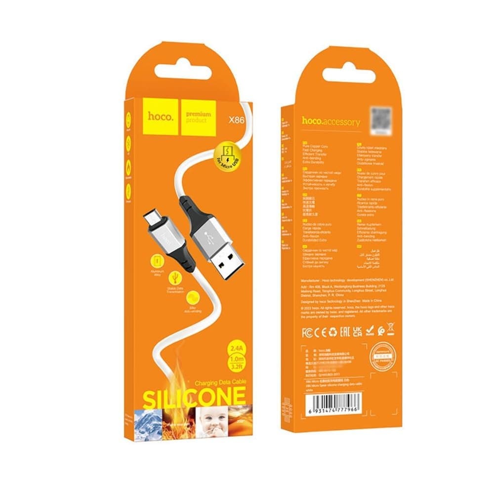 USB-кабель Hoco X86, Micro-USB, 2.4 А, 100 см, білий