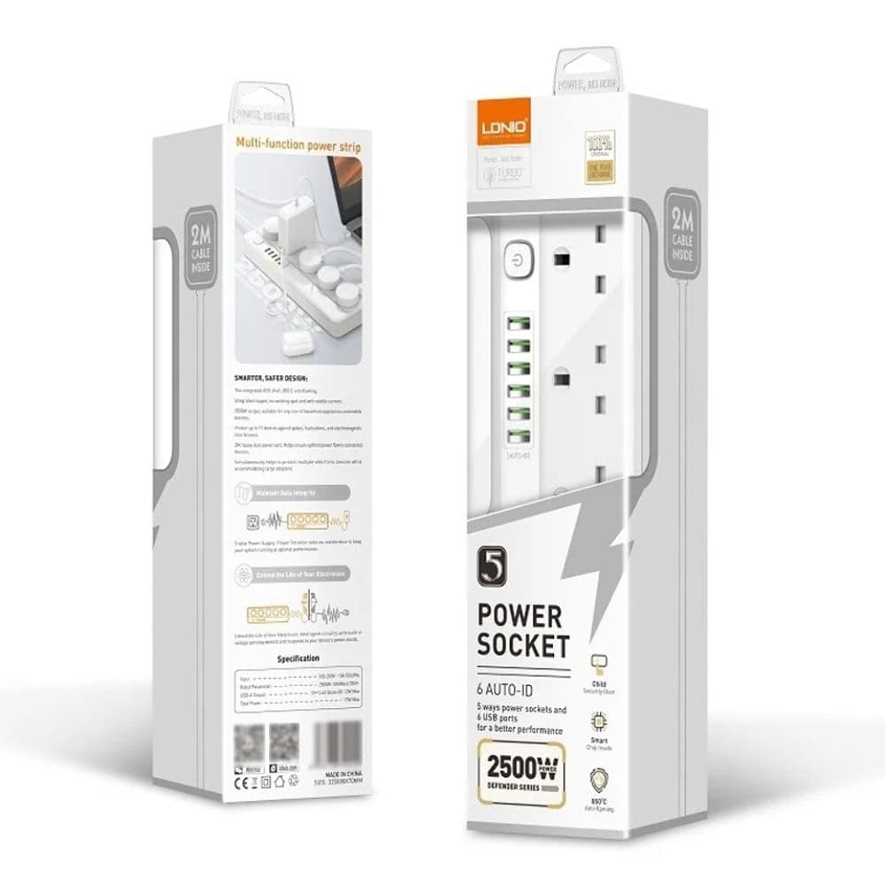 Сетевой удлинитель Ldnio SC5614, 5 розеток, 6 USB, 5V, 3.4A, 17W, кабель 200 см, білий