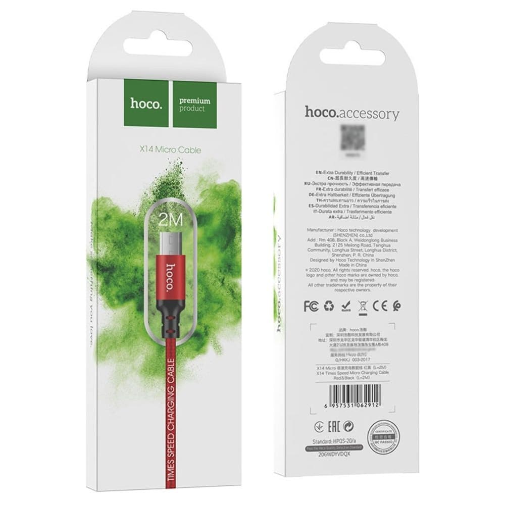 Купить USB-кабель Hoco X14, Micro-USB, 2.4 А, 200 см, красный, чорний можно и в нашем офисе, платить за доставку при этом не нужно.