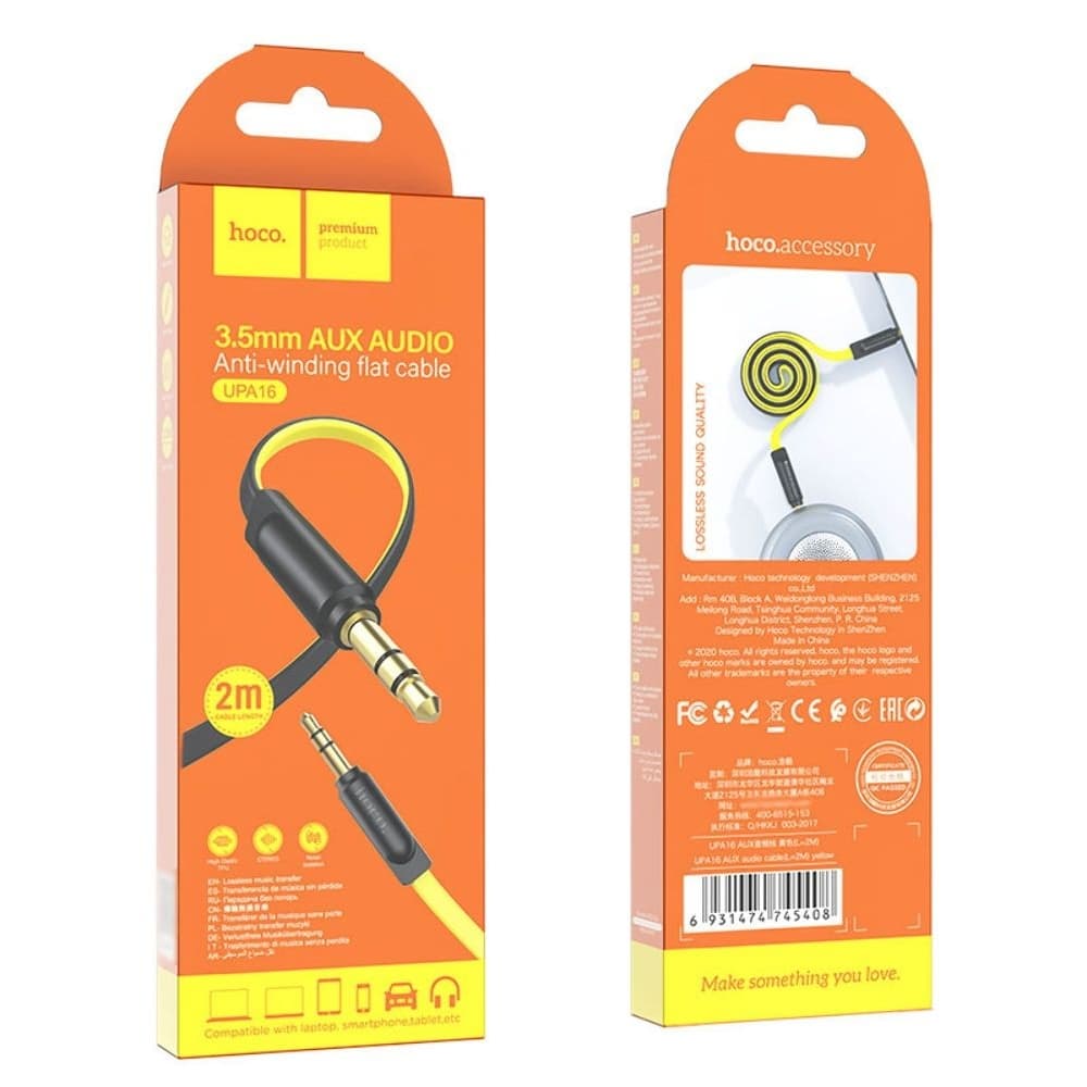 AUX-USB-кабель Hoco UPA16, Jack 3.5 на Jack 3.5, 200 см, желтый