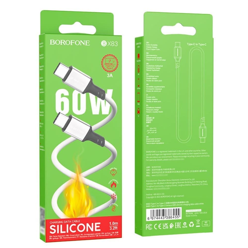 USB-кабель Borofone BX83, Type-C на Type-C, 60 Вт, Power Delivery, 100 см, білий