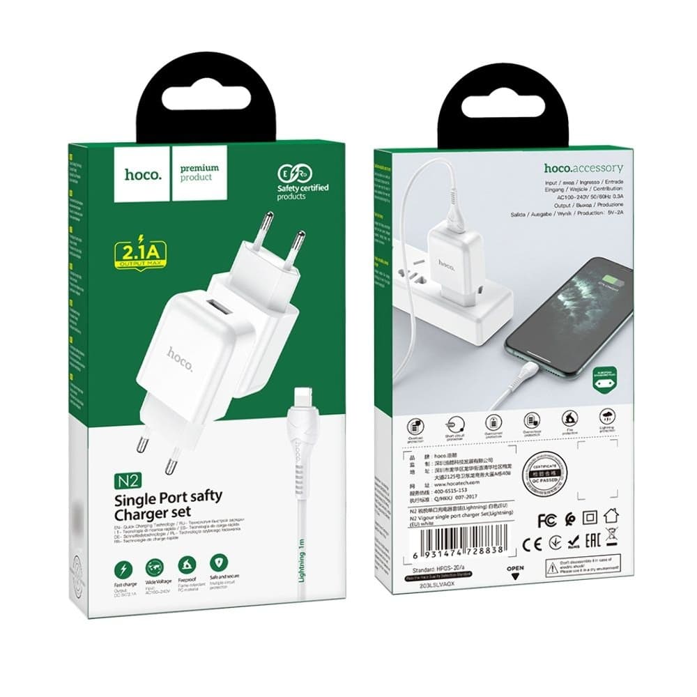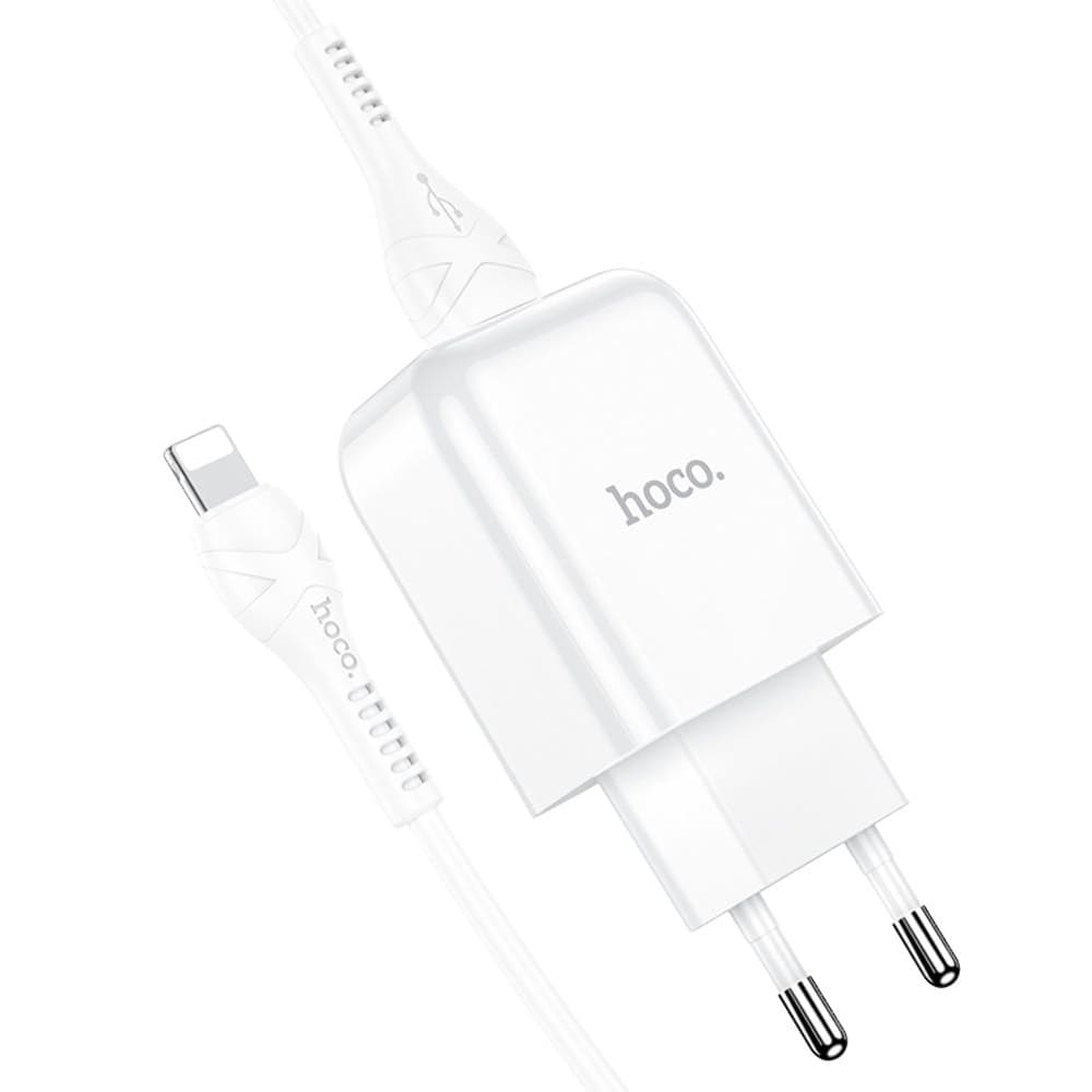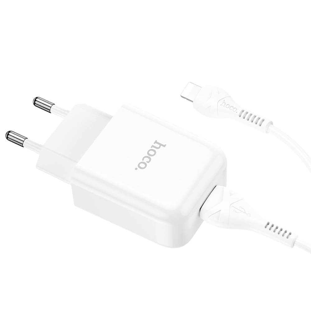 Сетевое зарядное устройство Hoco N2, 1 USB, кабель USB на Lightning, белое