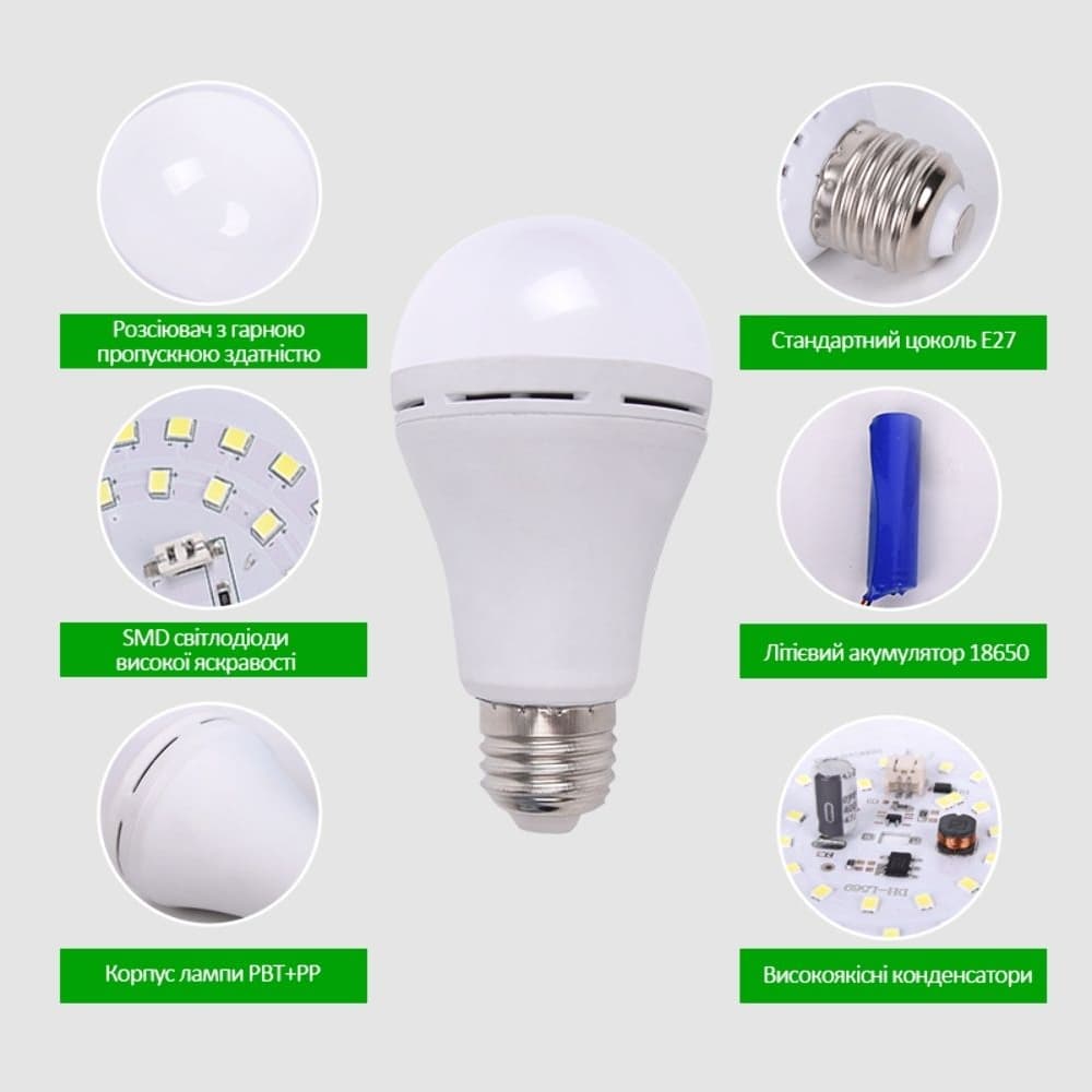 Лампочка аккумуляторная, цоколь E27, 15 Вт, с нейтральной температурой свечения