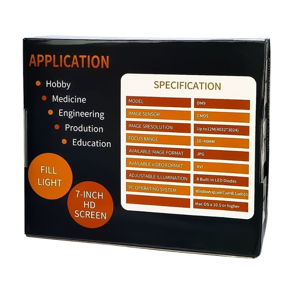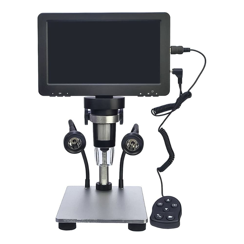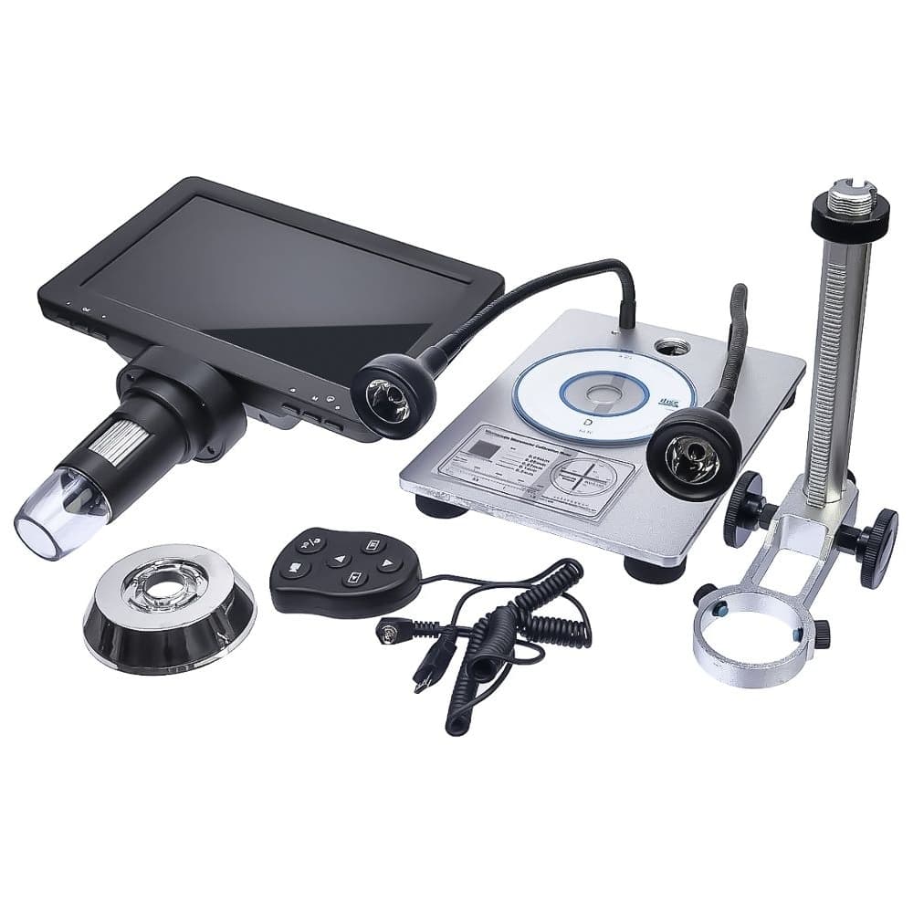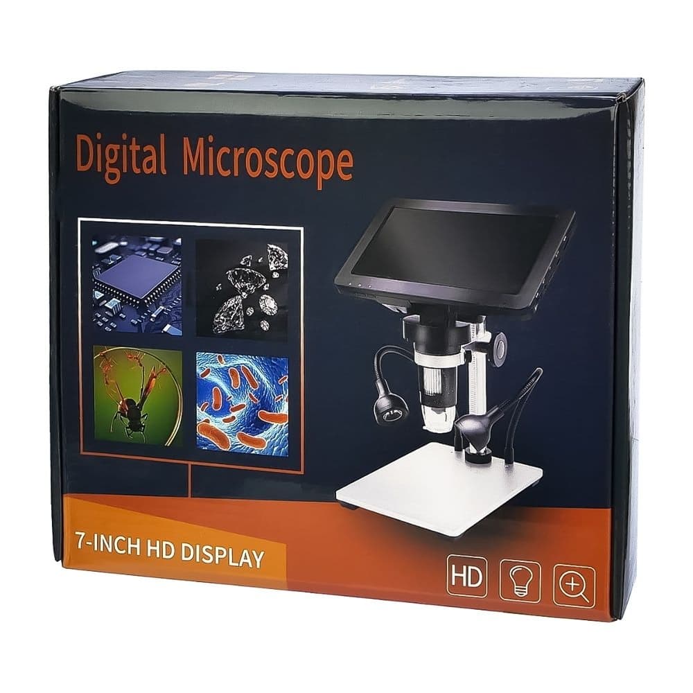 Цифровой микроскоп DM9, с монитором 7" и штативом, запись на microSD, фокус 20-170 мм, кратность увеличения 800X, подсветка, пульт ДУ, 5 В