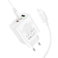 Купить Сетевое зарядное устройство Hoco C126A, 1 USB, 2 Type-C, PowerDelivery (40 Вт), белое, с кабелем Type-C на Lightning можно и в нашем офисе, платить за доставку при этом не нужно.