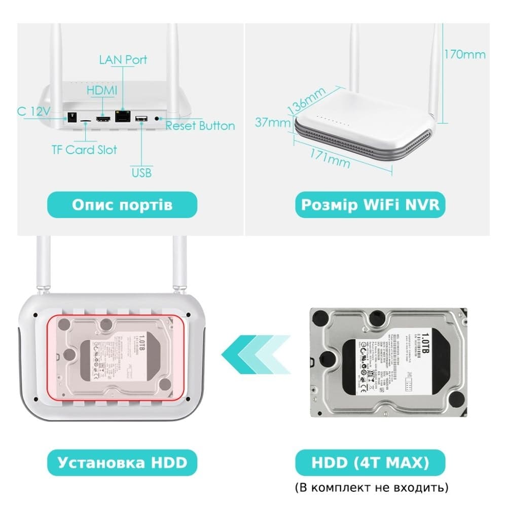Комплект Loosafe 131211-LS-N 4CH, для видеонаблюдения, 4 IP-камеры и NVR видеорегистратор, білий
