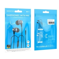Наушники Borofone BM78, проводные, вакуумные, с микрофоном, Jack 3.5, серые