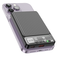 Power bank Hoco Q18, 10000mAh, PD, 22.5W, магнитный, с функцией беспроводной зарядки, чорний